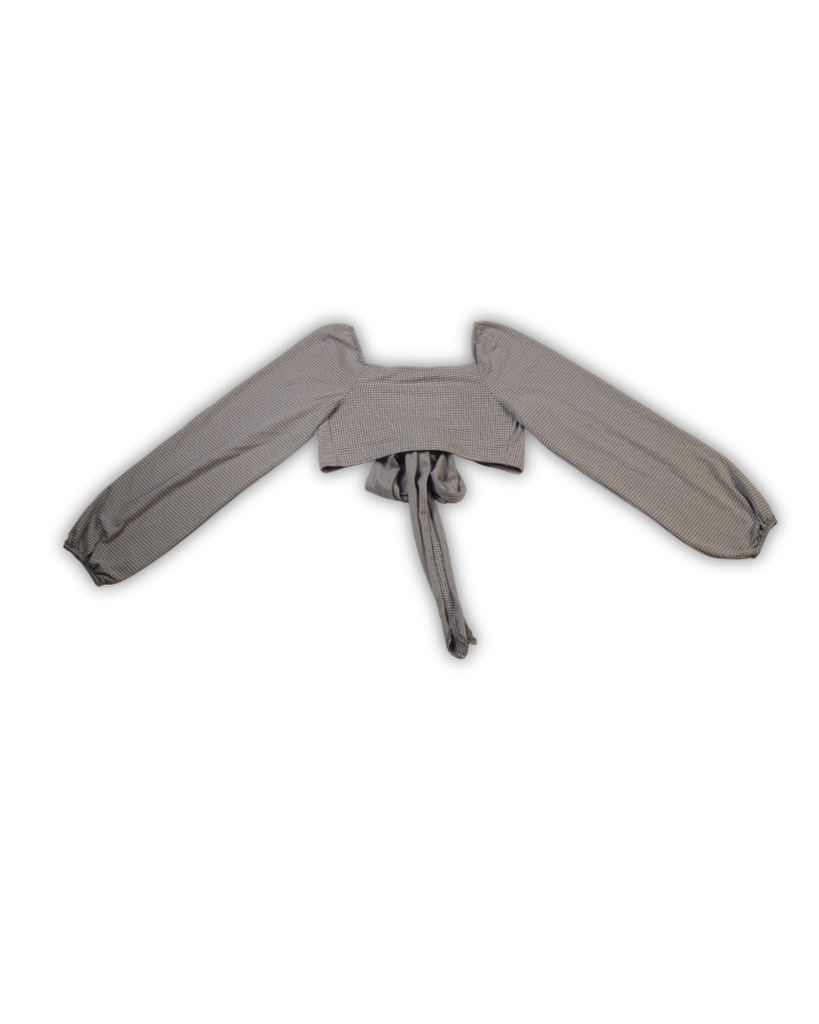 Deze blouse is een eyecatcher! De grijs-witte ruit geeft een klassieke touch en het cropped model met strik aan de voorkant zorgt voor een vrouwelijke look.