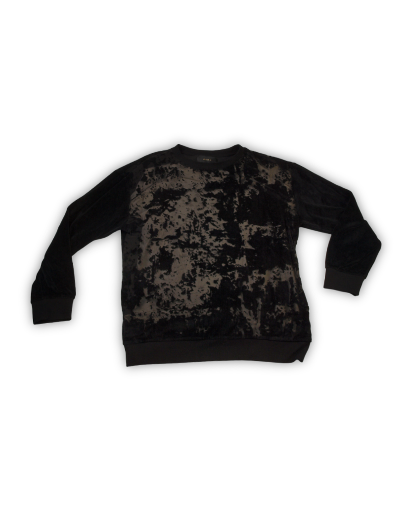 Durf jij op te vallen? Deze tweedehands trui is allesbehalve basic. Het fluweelzachte materiaal met doorschijnende voorkant zorgt voor een edgy uitstraling.